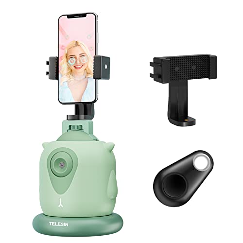 Auto Tracking Phone Holder, TELESIN AI Smart Face Body Tracking Phone Holder, Auto Face Tracking Tripod 360°Rotation,No App, Selfie Stick with Remote for Vlog Streaming Video (Green