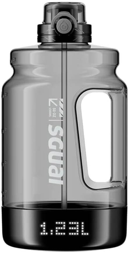 Smart Water Bottle, 44oz Smart Sports Gallon Water Bottle, Tracks Water Intake with Bluetooth, LED Glow Reminder, BPA Free Tritan Bottle for Fitness Gym Outdoor, Straw Lid, 1.3L