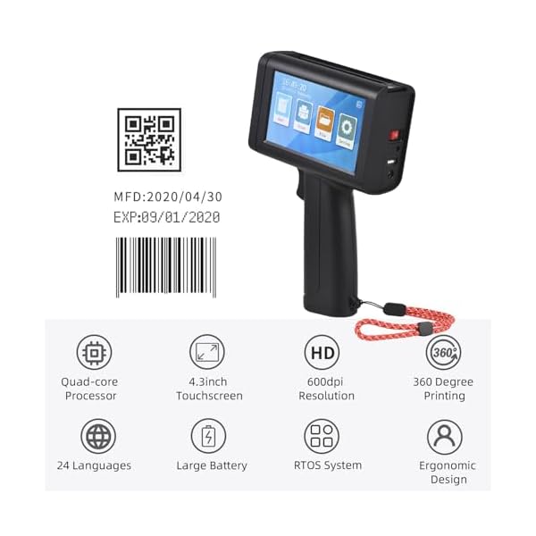 Bisofice Portable Handheld Printer Hand Inkjet Printer Code Printer with 4.3 Inch Touch Screen, 600 DPI, Quick Drying Ink Cartridge for Label/Production Date/Barcode/Brand/Logo/Graphic