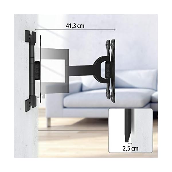 Hama 118060 Fullmotion Ultraslim TV Wall Bracket, 400 mm x 400 mm Size, Black