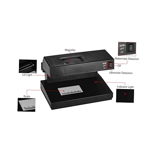 【Magnifier & Scale】: The magnifying at top of the detector can easily help you to observe micro-printing on bills. The detecting platform with scale design, easy to measure your items.