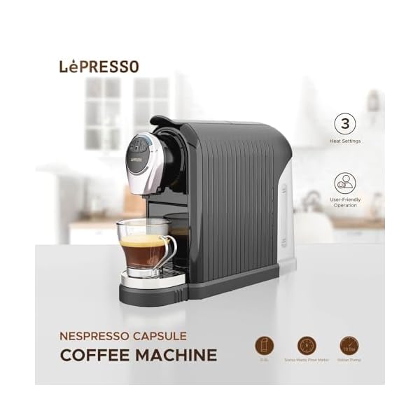 LePresso Nespresso Capsule Coffee Machine, User-Friendly Operation, Swiss Made Flow Meter, 19 Bar Pump Pressure, 3 Heat Settings