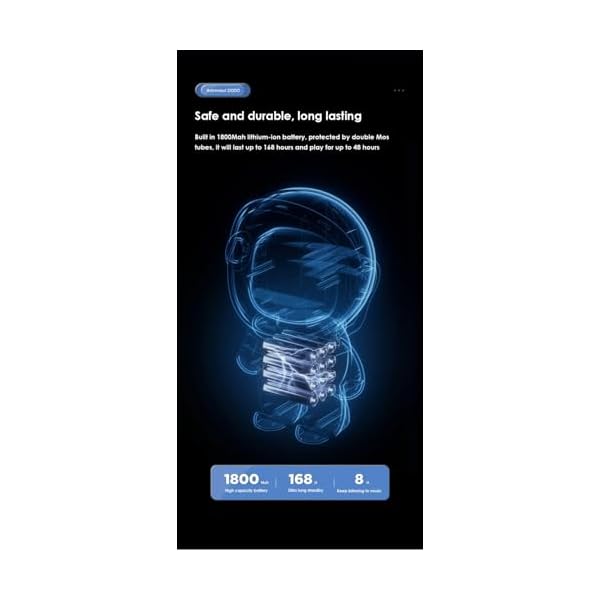 Safe and Durable: Long life, built in 1800mAh lithium ion battery, dual MOS tube protection, standby time up to 168 hours, play time up to 4‑8 hours.