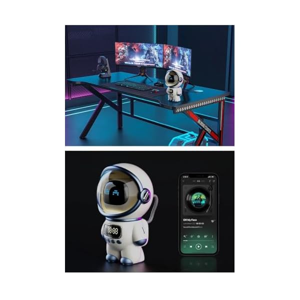 Smart Astronaut Wireless Bluetooth intelligent speaker, Music Speaker Clock Display Durable for Bedroom (White),high bass, extra fine, unit