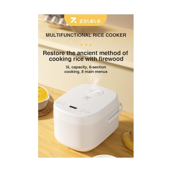ZOLELE Smart Rice Cooker 5L ZB600 Smart Rice Cooker for Rice, Porridge, Soup, Stew, and More. With 16 Preset Cooking Functions, 24-Hour Timer, Keep Warm Function, and Non-Stick Inner Pot – White