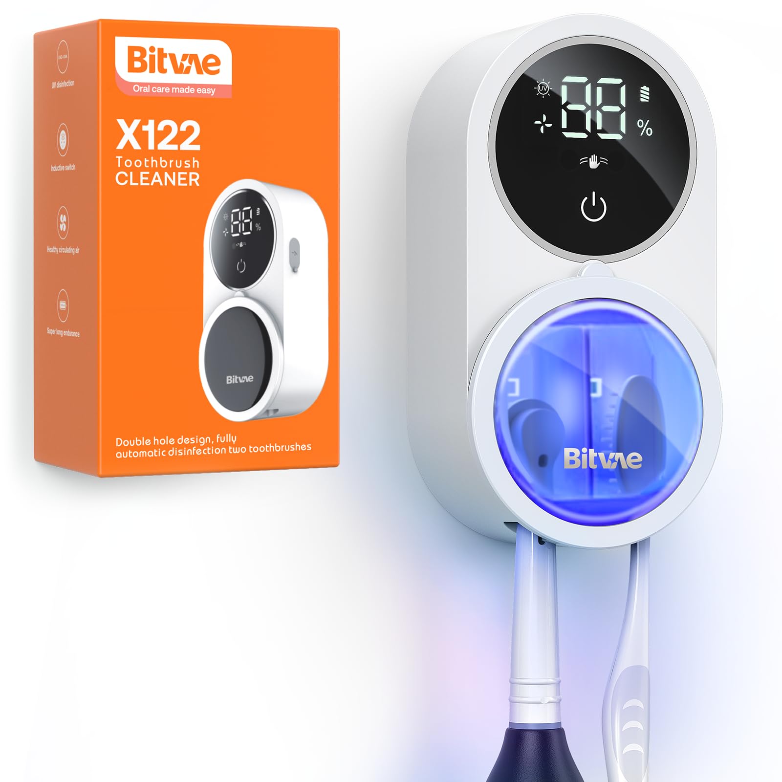 Bitvae Toothbrush Holder,Toothbrush Cleaner for Bathroom,LED Smart Screen,Cleaning and Air Drying,Automatic Rotating Cover Wall Mounted Smart Tooth Brush Holder,White