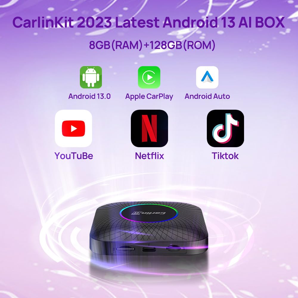 CarlinKit Android 13 CarPlay AI BOX LED/8GB+128GB/Wireless CarPlay and Android Car adapter/Watch Netflix, YouTube, Qualcomm SM 6225/Google Play Store/OTA Update