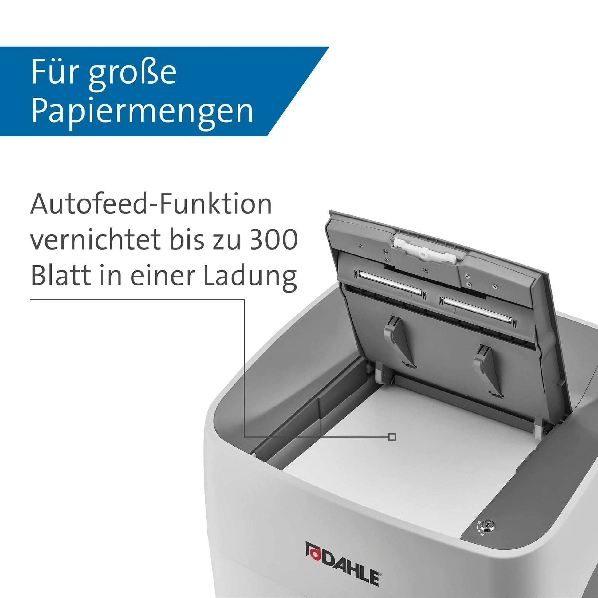 Dahle ShredMATIC 300 P4 Automatic Feed Shredder (300 Sheets, Particle Cut, Oil and Maintenance-Free, Automatic Paper Feeder), Grey