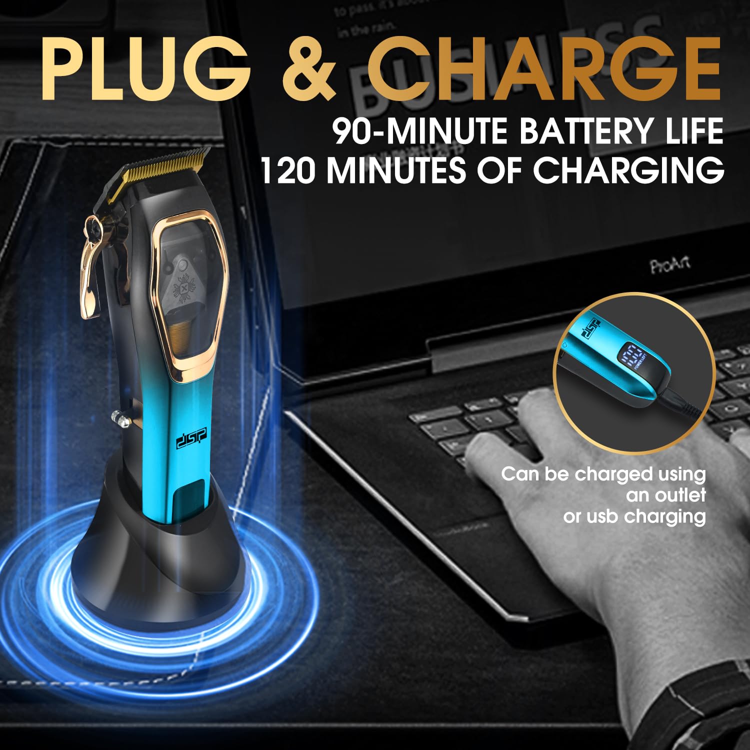 DSP Pro Barber Hair Clippers Set: Cordless Magnetic 9000 RPM, Constant Speed Control for Smooth Cutting. Ceramic Blades, 2500mAh Battery, Low Noise & Heat - Ideal for Men's Grooming & Fades (Blue)