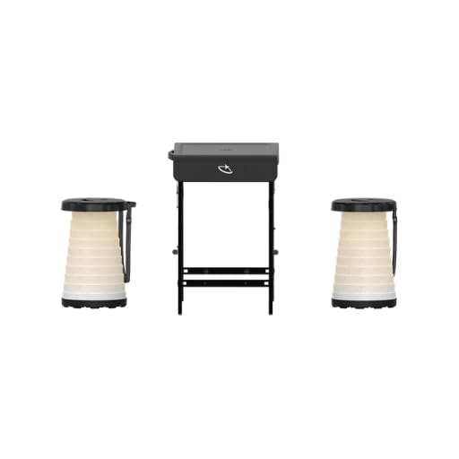 - ILLUMINATED SEATING: Built-in LED lighting system in stools with 3 adjustable modes, powered by AA batteries for enhanced visibility during evening outdoor activities.