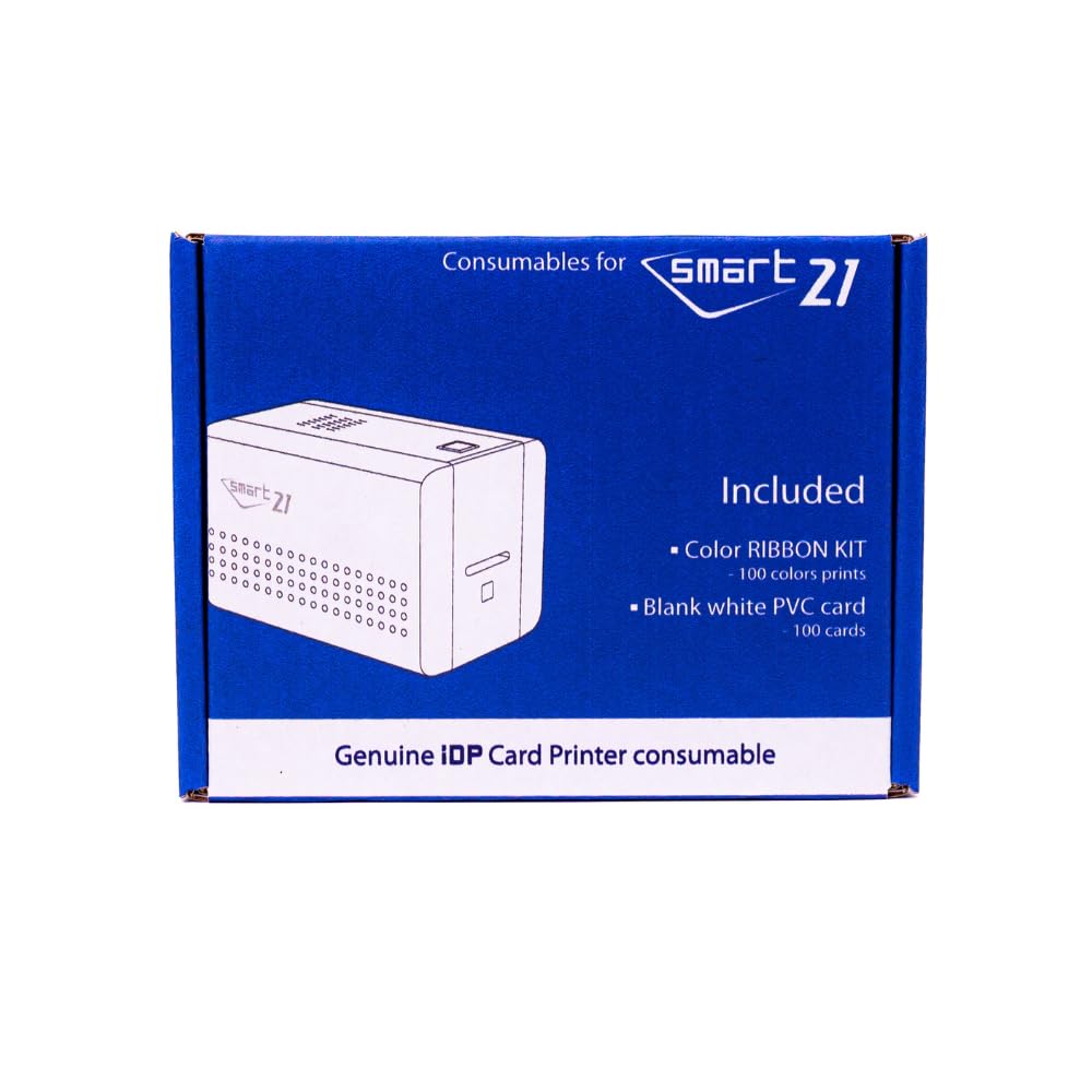 IDP SMART-21 YMCKO Original Consumables Kit with 100 Color Ribbon, 100 Primus Plastic PVC Cards and Cleaning Roller (Not Compatible with IDP Solid Brand Products)