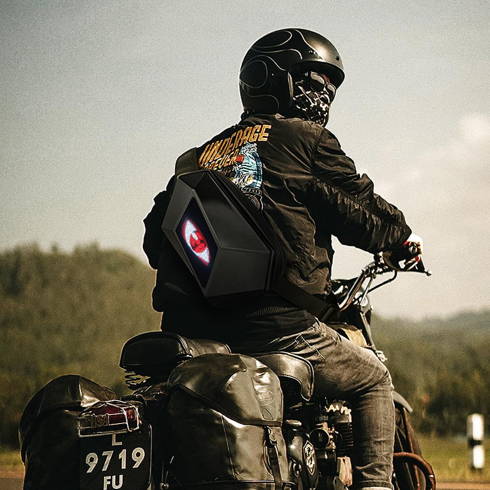 RGA LED Backpacks, Pixel Art Motorcycle Backpack, Dynamic, Wi-Fi, Waterproof, 64 x 64 cm, Supports iOS/Android System, LED Display, Text/Picture/Gif Animation, College Students Laptop Backpack