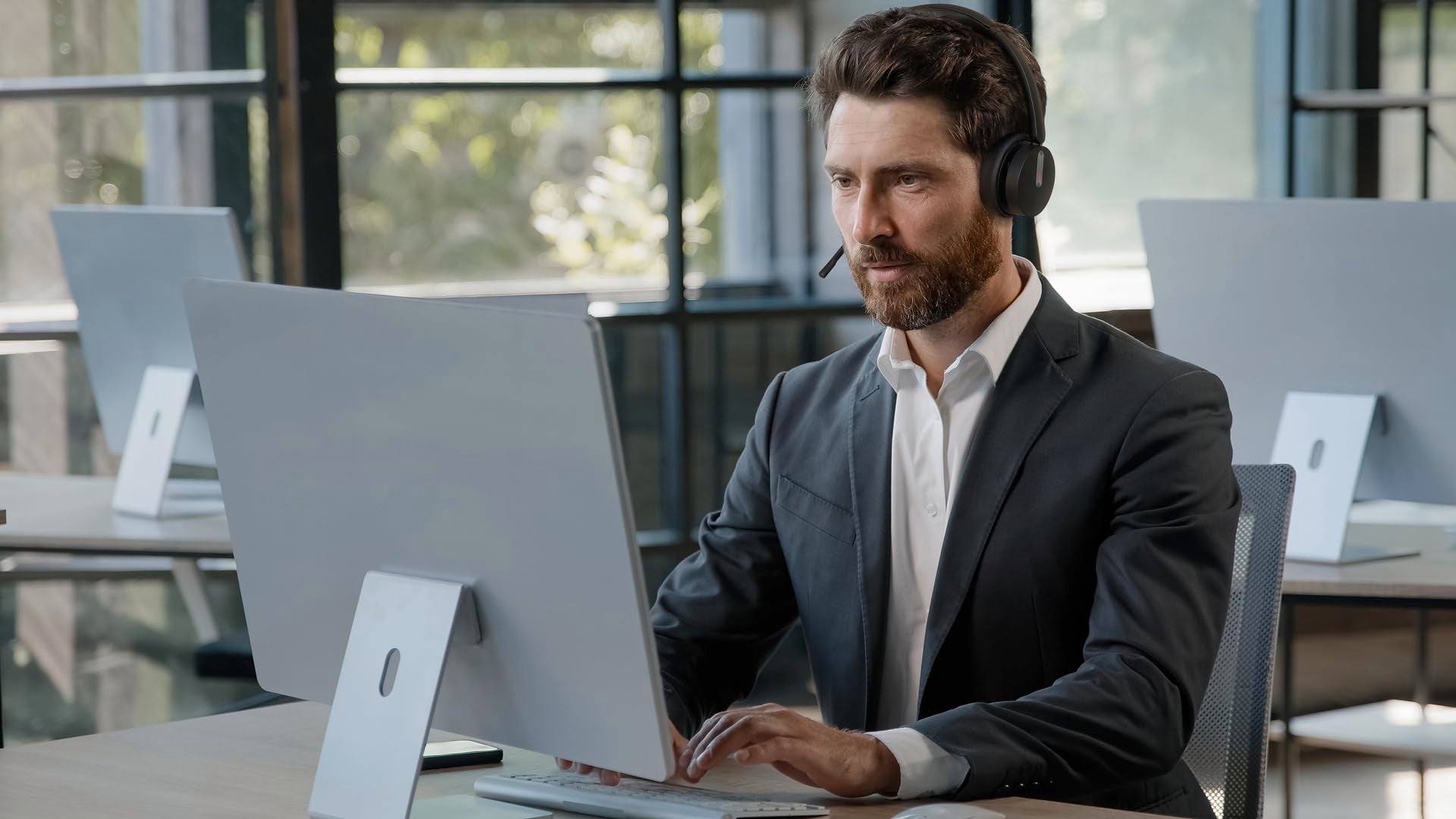 The WH64 is a cordless headset for business communication. It integrates DECT and Bluetooth modes and provides efficiency and flexibility. Advanced Acoustic Shield Technology 2.0 filters out background noise and ensures clear sound transmission. The Busylight signals your call status to avoid interruptions. Ergonomic design, high-quality materials and a light weight ensure a solid wearing experience. It seamlessly connects to IP phones and UC platforms and allows plug-and-play and device switching. Ideal for clear conversations and smooth office processes.