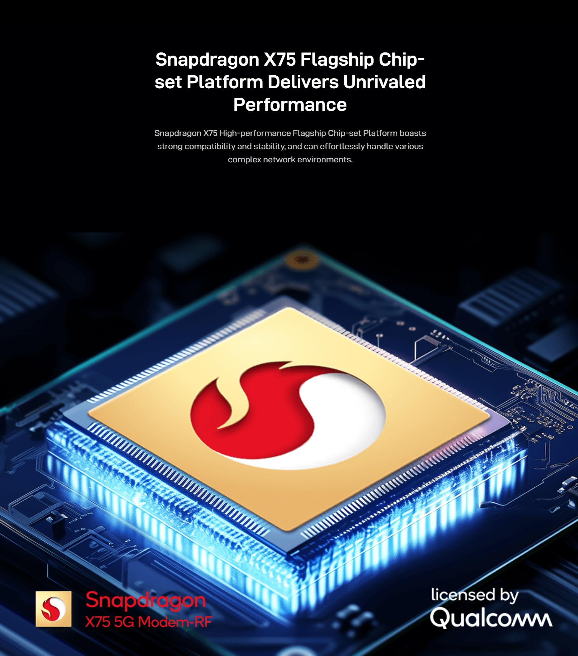 - Powered by Qualcomm Snapdragon X75 5G modem